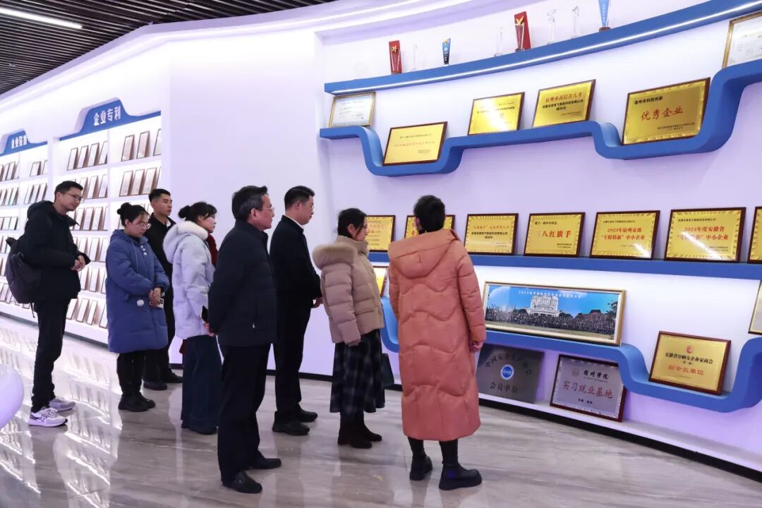 3月6日,宿州市科技局、安徽创新馆服务管理中心领导一行莅临我司参观指导,公司董事长胡玲玲、总经理高利忠热情接待,并全程陪同参观交流。